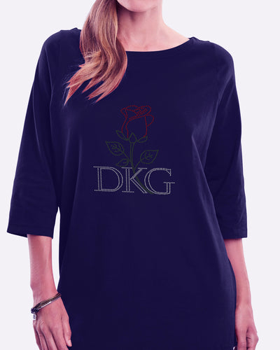 Rosebud Shirt (Round Neck, 3/4 Sleeves, Silver Rhinestones)