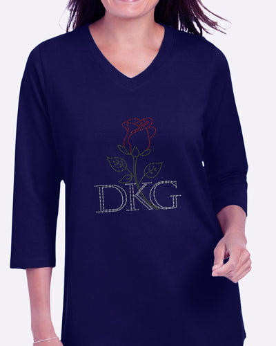 Large Rose Shirt Plus Sizes (V-Neck, ¾ Sleeves, Silver Rhinestones)